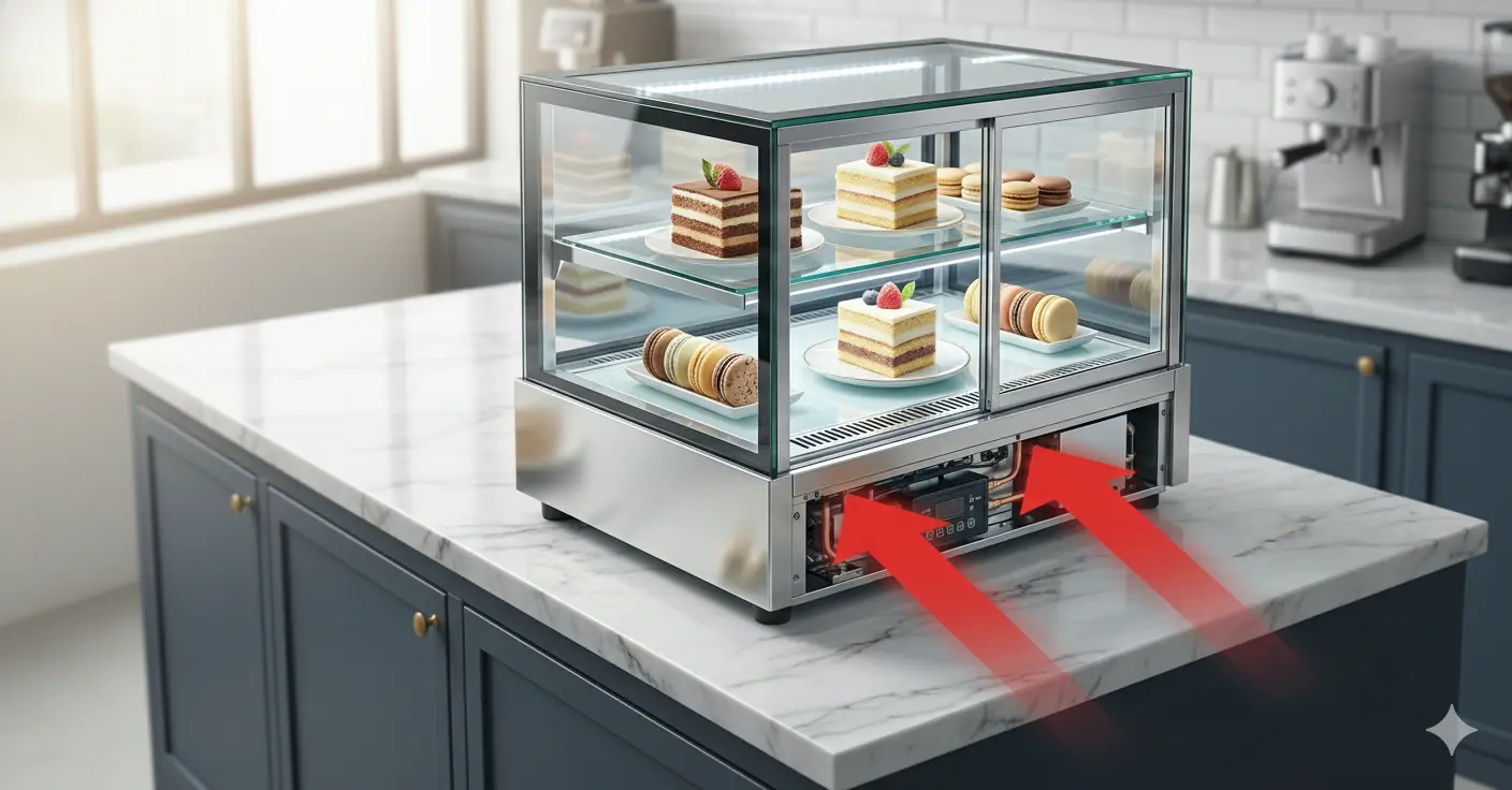 질문 1. 협소한 카운터 위에 소형쇼케이스냉장고 를 배치할 때 기계실 열 배출 문제를 해결하는 공학적 설계 포인트는?