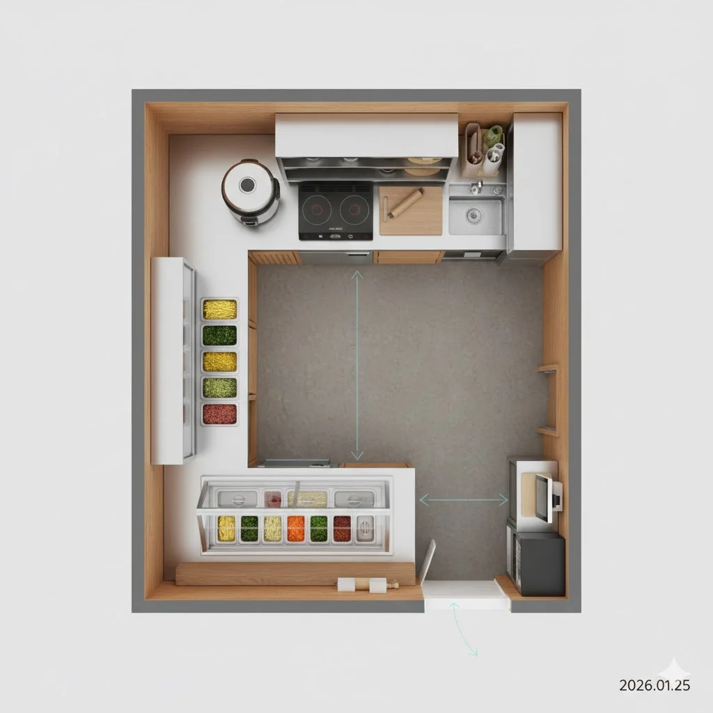 🍱 소규모 김밥집(5~8평) 주방 배치 최적화 도면