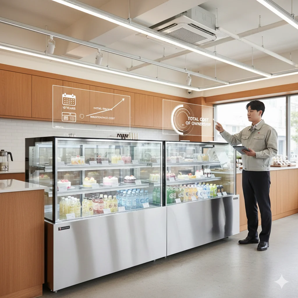 단순히 눈에 보이는 쇼케이스가격만 볼 것이 아니라, 10년 이상 사용했을 때의 유지 관리비인 총소유비용을 따져봐야 합니다.