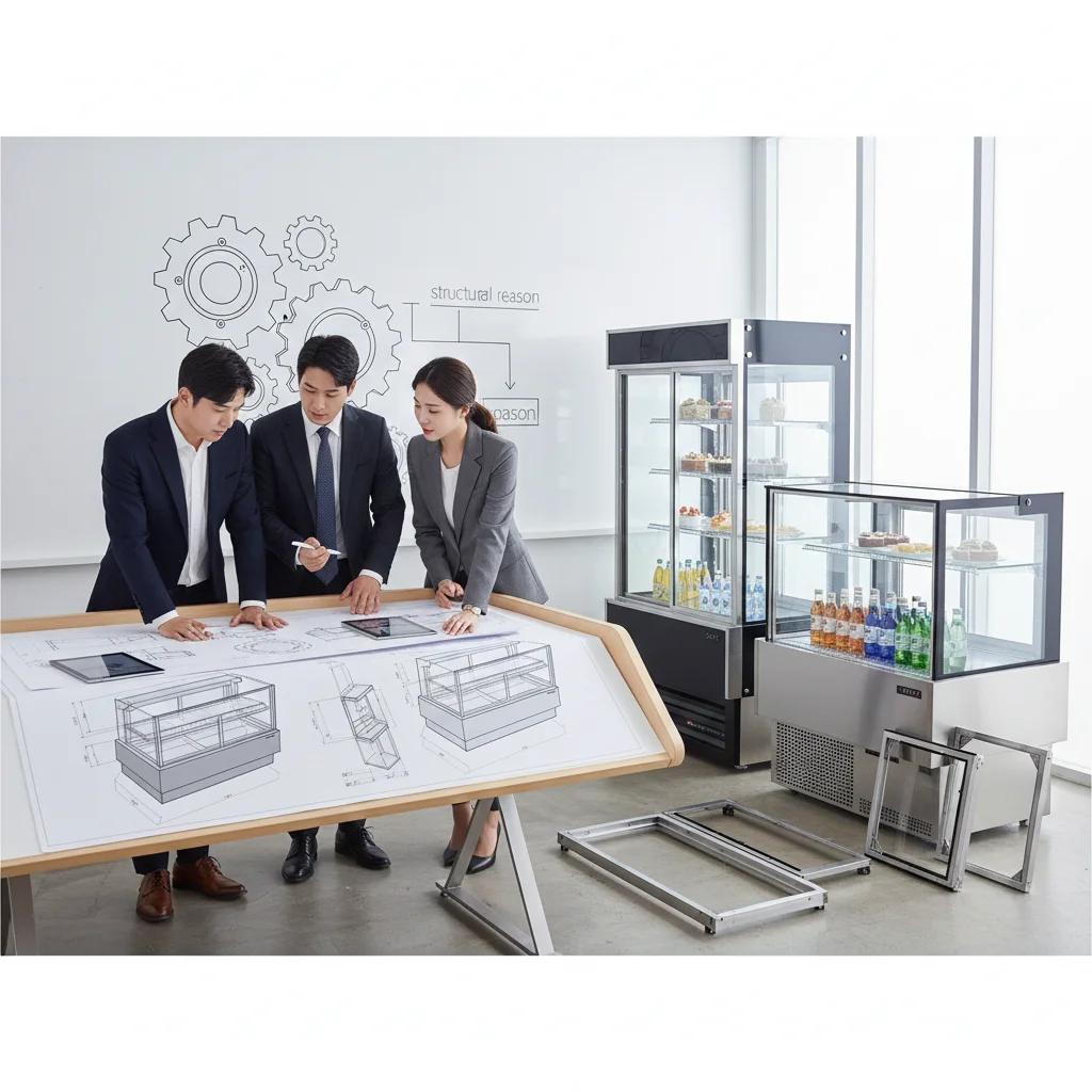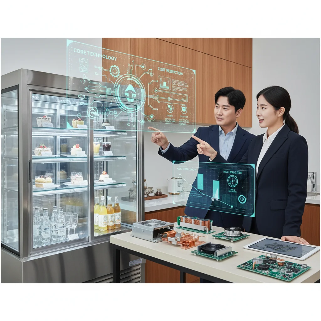 매장 공간을 100% 활용하는 맞춤 설계와 전기 요금을 아껴주는 정밀 냉각 기술, 그리고 상품을 예술로 격상시키는 디자인이 조화를 이루어야 합니다.