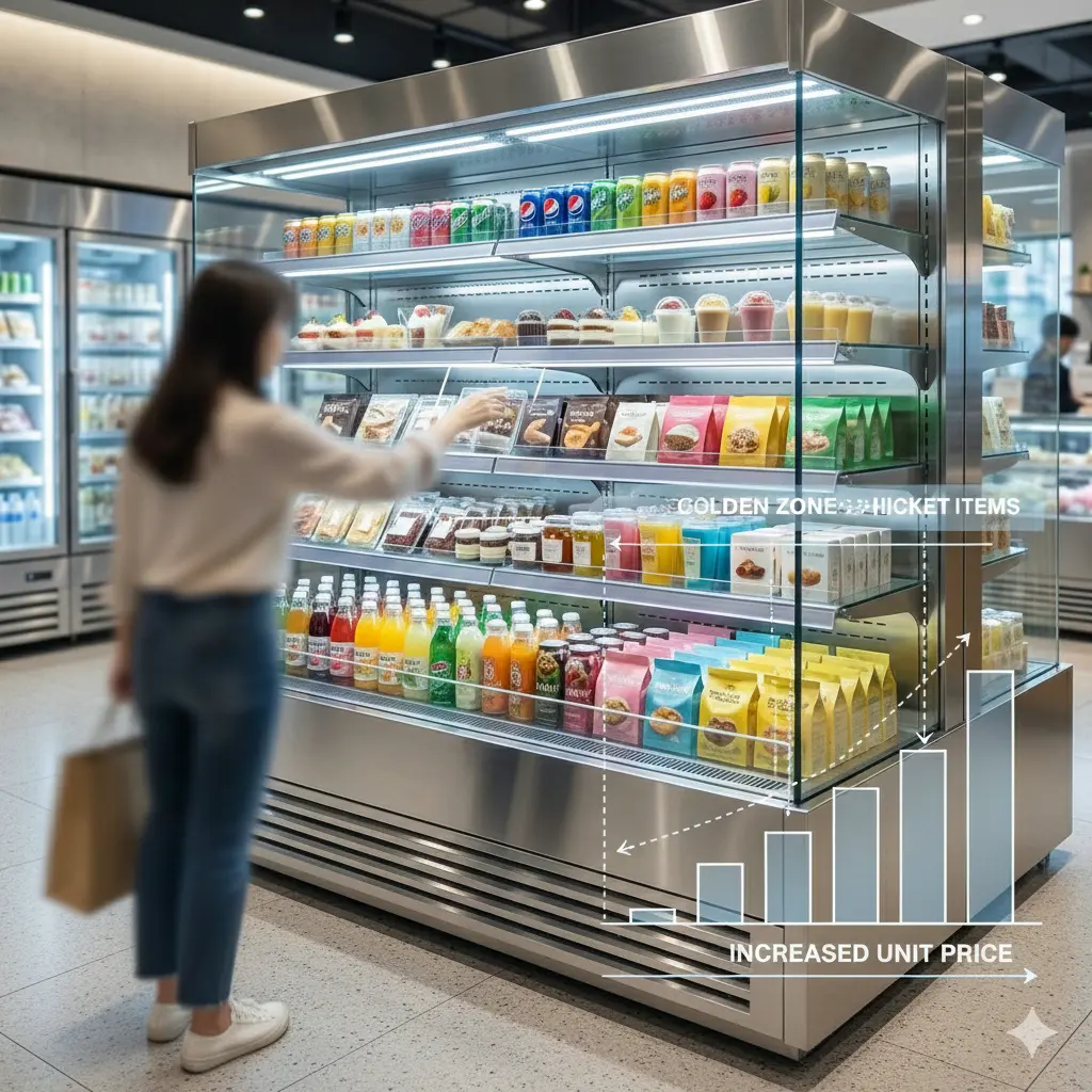 쇼케이스진열대 매출 상승을 부르는 마케팅, 왜 고객은 특정 칸에만 손을 뻗을까? 광학 기술과 인체공학 설계의 비밀
