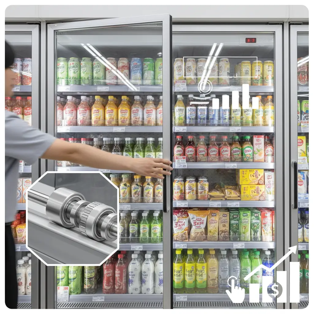 고객이 상품을 집으려 할 때 도어가 뻑뻑하거나 기분 나쁜 마찰음이 들린다면, 그 순간 구매 욕구는 급격히 감소하게 됩니다.