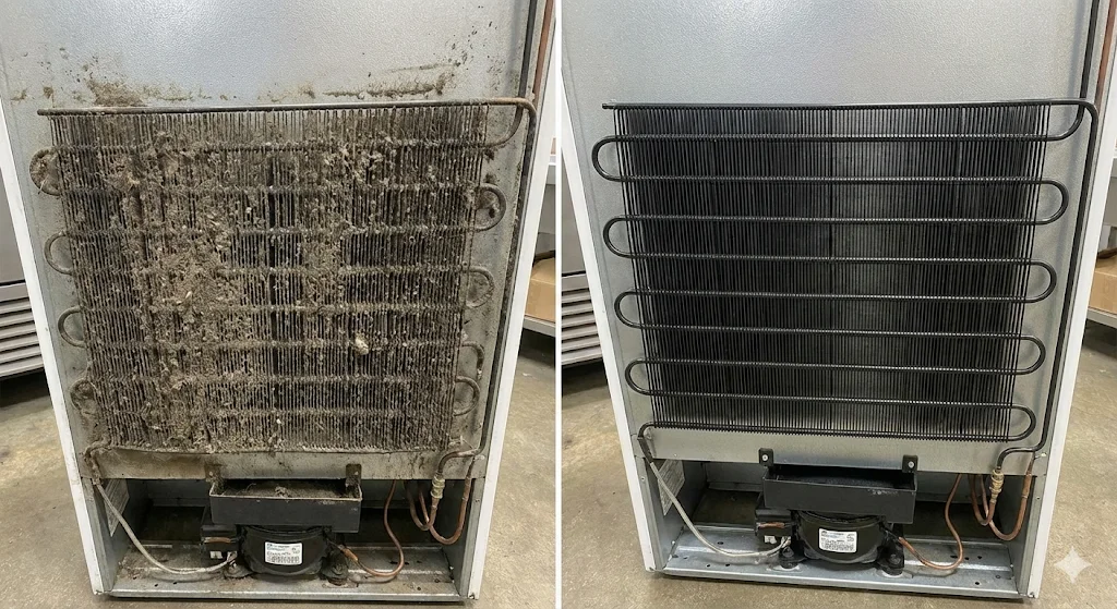 쇼케이스 하단이나 후면에 위치한 응축기에 먼지가 쌓이면 열 교환이 원활하게 이루어지지 않습니다.