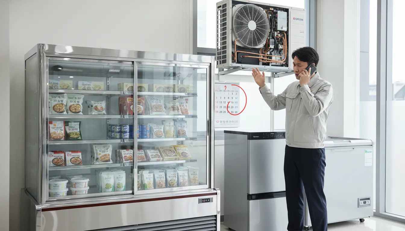 이런 경우 부품 수급이 어려워 수리에 긴 시간이 소요되거나, '부품이 단종되었다'는 무책임한 답변을 듣기 쉽습니다.[한성쇼케이스의 국내 자체 생산 및 대응] 저희는 시흥 본사 공장에서 직접 설계하고 제작하는 100% 국내 생산 시스템을 갖추고 있습니다.