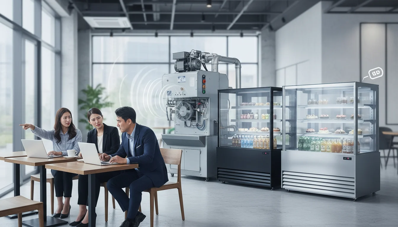카페나 조용한 베이커리에서 '웅~' 하고 계속 돌아가는 콤프레셔 소음은 매장의 분위기를 깨는 주범입니다.