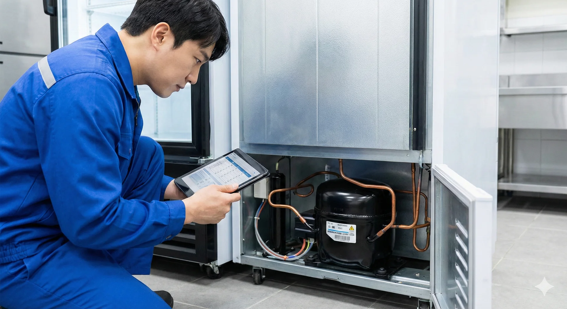 인버터 압축기를 점검하는 엔지니어