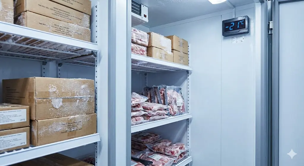 냉동 보관 기준: 식품의 중심부 온도가 -18°C 이하가 되도록 관리해야 합니다. 이는 미생물의 활동을 완전히 억제하여 장기 보관 시 품질 저하를 막기 위한 최소한의 가이드라인입니다.