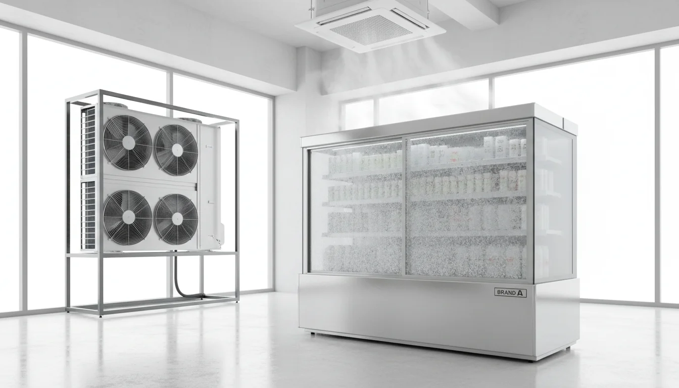 단순한 스펙 나열이 아니라, 실제 매장 운영 시 겪게 되는 문제점을 중심으로 브랜드별 차이를 짚어드립니다.Q1. 브랜드 A(보급형)를 샀더니 제품이 안 보일 정도로 '눈꽃'이 핍니다. 왜 이런가요?