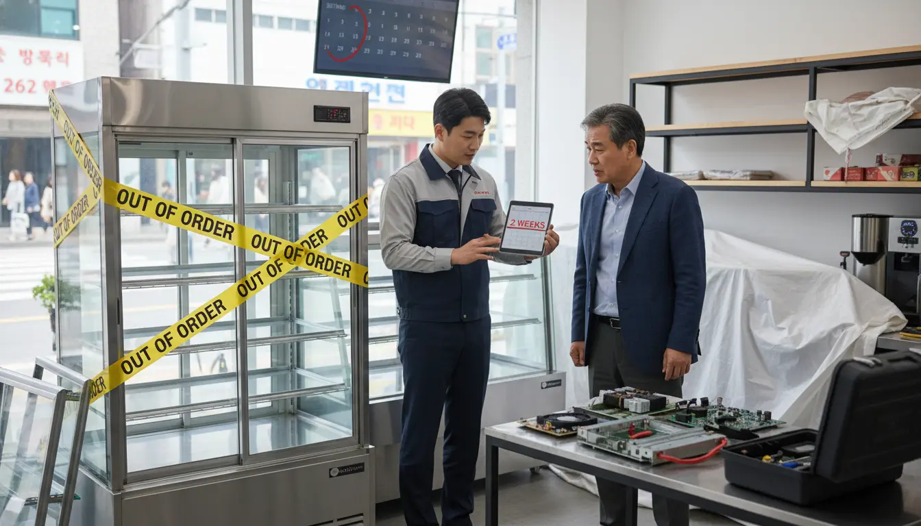 특히 중국산 저가 부품을 사용한 경우, 부품 수급이 중단되면 멀쩡한 쇼케이스를 고철로 버려야 하는 상황이 발생합니다. 여름 성수기에 냉장고가 멈췄는데 2주를 기다리라는 건 폐업하라는 소리와 같습니다.[직접 제조사의 책임감] 국내 공장에서 직접 설계하고 생산하는 브랜드는 모든 부품을 보유하고 있습니다.