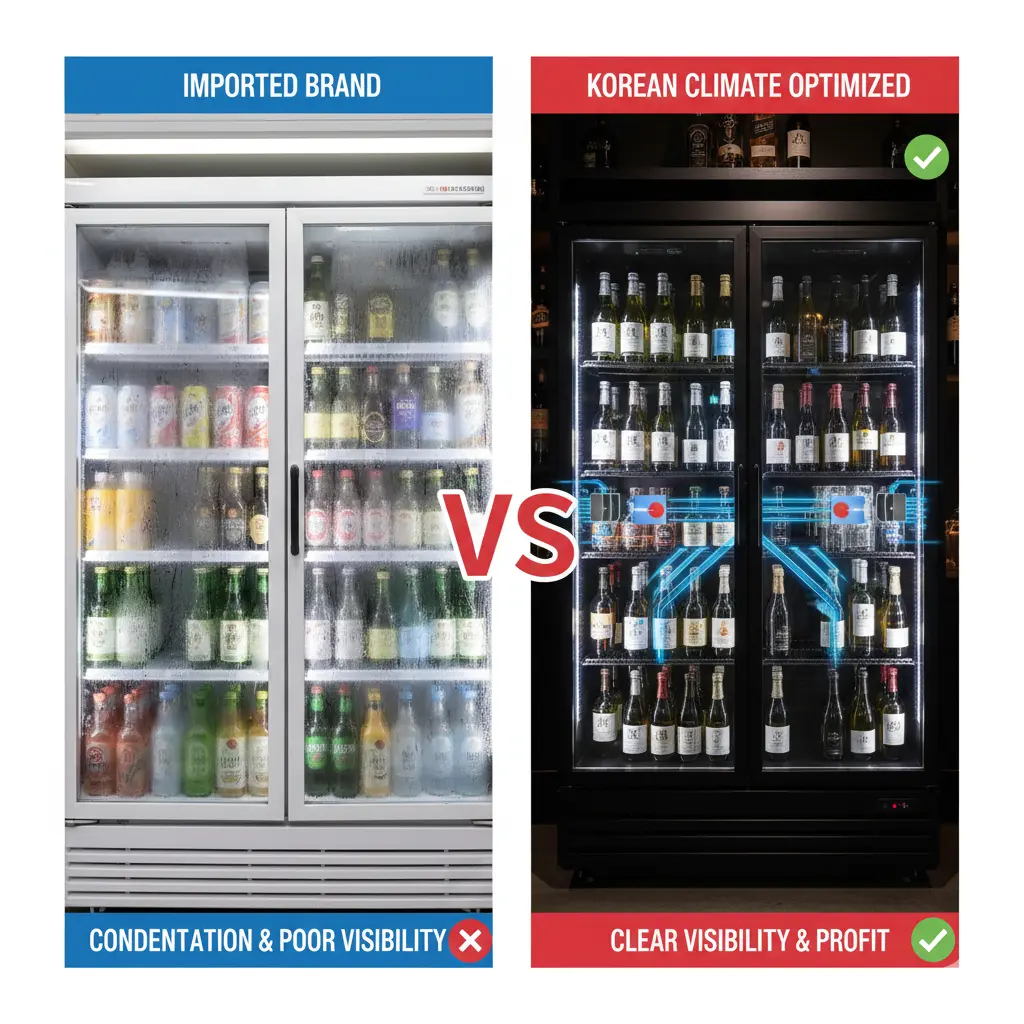 결로로 인해 라벨이 흐릿하게 보이는 장비는 고객의 주문 본능을 깨우지 못하며, 이는 곧 매장의 주류 매출 하락으로 이어지는 리스크가 됩니다.