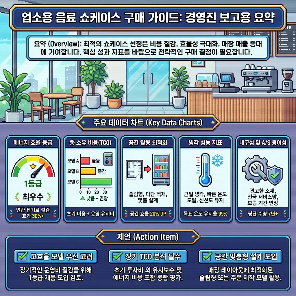 수많은 업소용 음료 쇼케이스 중에서 우리 가게에 최적의 제품을 고르기란 쉽지 않습니다. 다음의 5가지 핵심 전략을 통해 현명한 선택을 하시길 바랍니다.