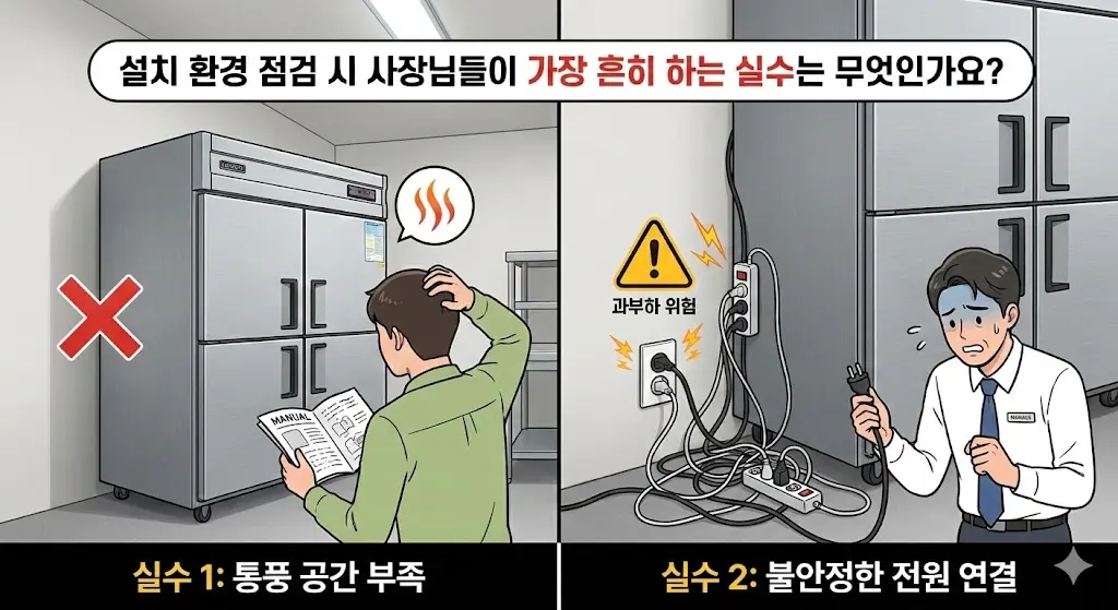 아무리 비싸고 성능 좋은 냉장쇼케이스를 사더라도 설치 환경이 부적절하면 제 성능을 발휘하지 못하고 금방 고장 나기 마련이에요.