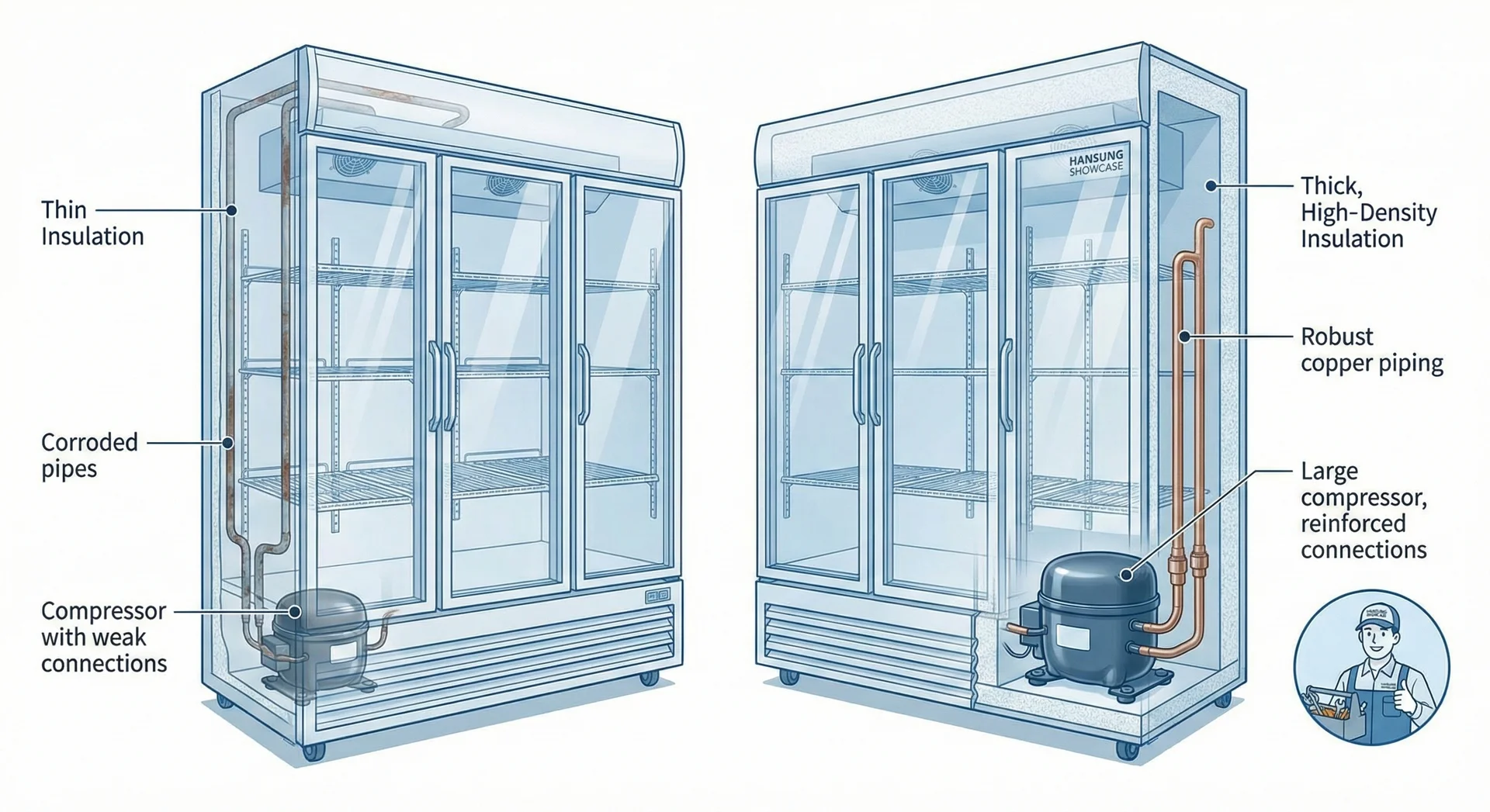 반면 한성쇼케이스는 이들과는 결이 조금 달라요. 기성 제품을 가져다 파는 유통 구조가 아니라 직접 제조 시설을 갖추고 설계를 진행하거든요. 기성 브랜드들이 정해진 규격 안에서만 움직인다면, 여기는 현장의 특수성을 반영한 맞춤형 보강이 가능하다는 게 차별점이에요.