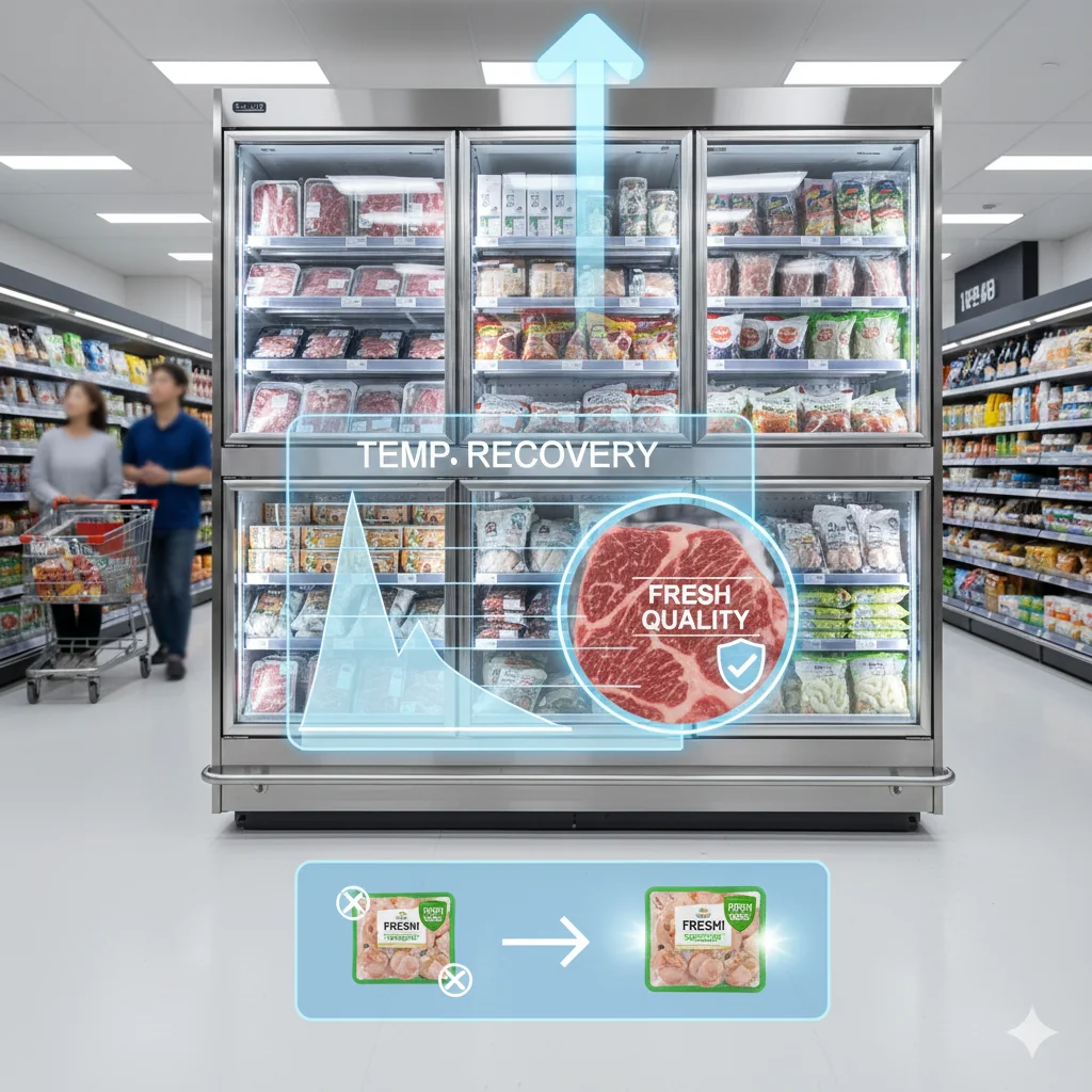 복원 속도가 느리면 식자재 표면의 얼음 입자가 녹았다 다시 얼기를 반복하며 맛의 변질을 초래하므로, 고토크 모터와 정밀 팽창 밸브의 조합이 중요합니다.