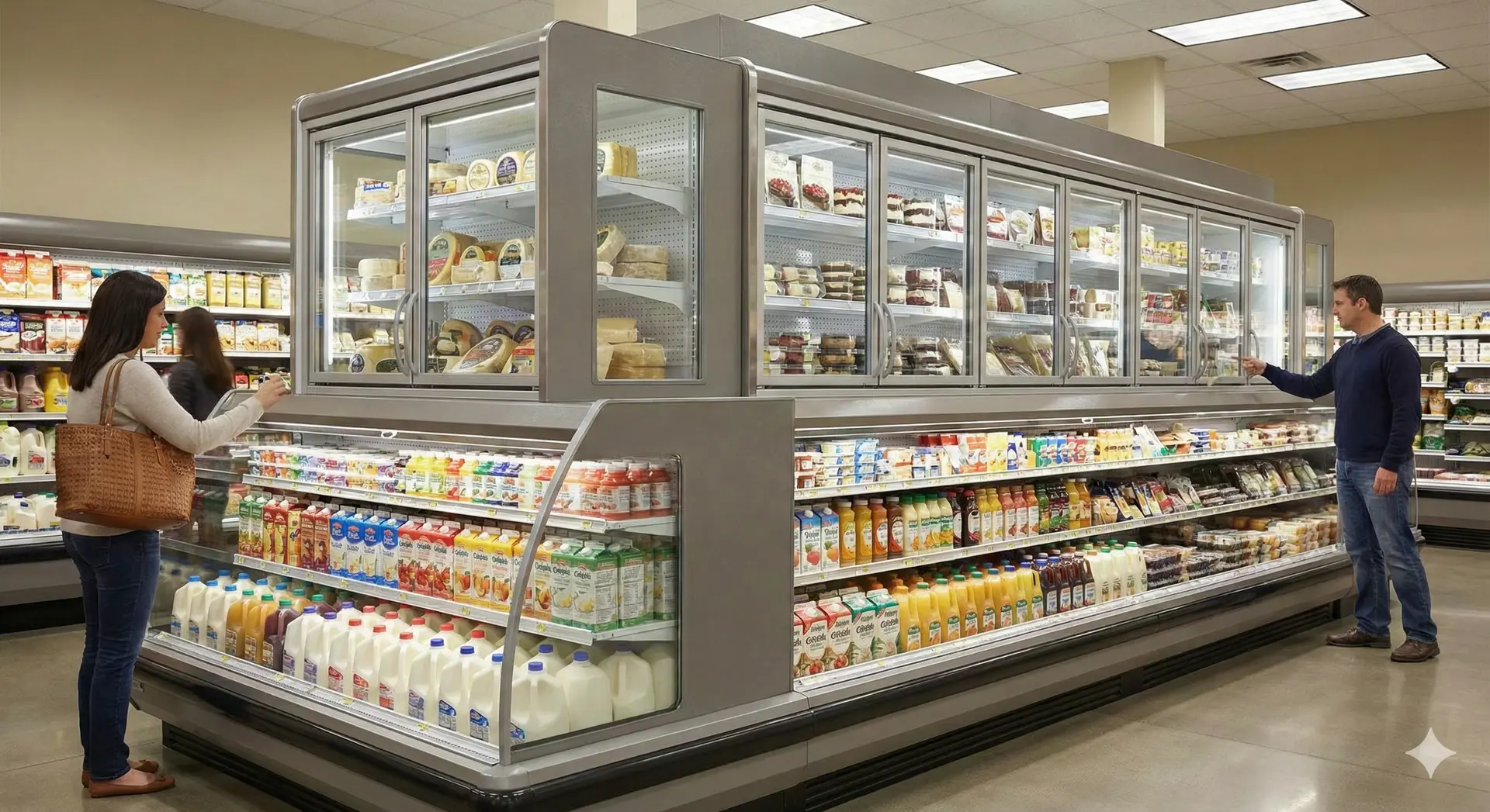 문(Door)이라는 물리적, 심리적 장벽을 없앤 오픈형냉장고는 고객이 상품을 직접 만지고 고르는 '체험형 쇼핑'을 가능하게 하여 매출을 극대화하는 핵심 설비입니다.