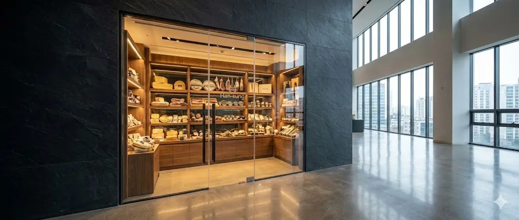 2026년의 트렌드는 장비의 존재감을 인테리어 속으로 완전히 숨기면서도, 내부의 제품은 보석처럼 빛나게 하는 '보이지 않는 웅장함'입니다.