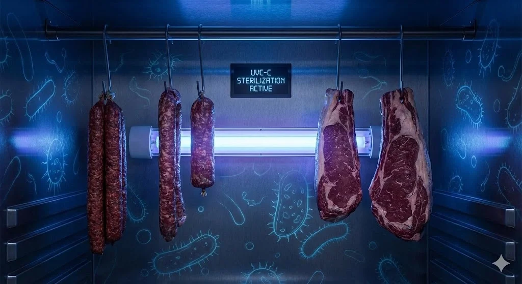 항습 시스템 (1%의 정밀함): 75~85% 사이의 습도는 곰팡이의 증식을 억제하면서도 고기 겉면이 적절히 마르게(Crust 형성) 조절해야 합니다.
