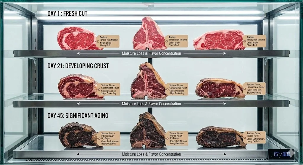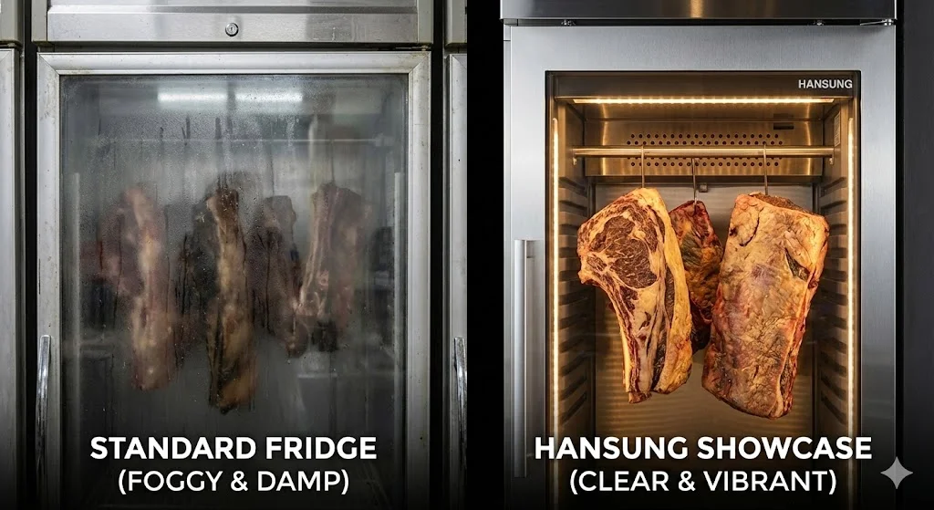 ① "결로 없는 유리창이 매출을 만든다": 드라이에이징은 과정 자체가 고객에게 신뢰를 주는 '퍼포먼스'입니다.