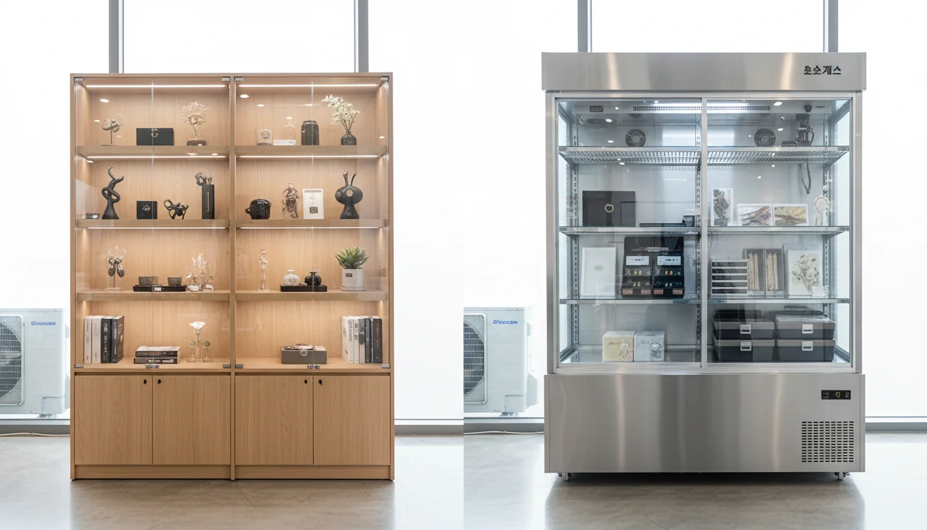 단순히 병을 올려두는 나무 선반과 술의 가치를 빛내주는 전문 쇼케이스는 매출의 앞자리를 바꿉니다. 오늘은 시중의 일반 가구 브랜드와 업소용 쇼케이스 전문 브랜드들의 특장점을 비교하여, 사장님의 매장에 최적화된 선택이 무엇인지 짚어드리겠습니다.Q1. 일반 가구 브랜드의 장식장과 전문 쇼케이스, 보관 성능에서 어떤 차이가 있나요?