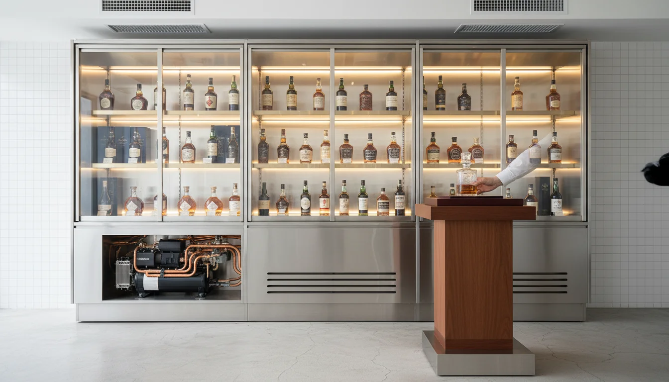도서관보다 조용한 정숙함을 유지하며, 진동을 극한으로 억제합니다. 한성쇼케이스 본사 홈페이지의 포트폴리오를 보시면 아시겠지만, 고급 호텔 라운지와 프라이빗 바에서 저희를 선택하는 이유는 바로 이 '보이지 않는 정숙함' 때문입니다.Q3. 조명 하나로 술의 색감이 달라 보인다는 게 사실인가요? (조명 및 UV 차단 기술 비교)