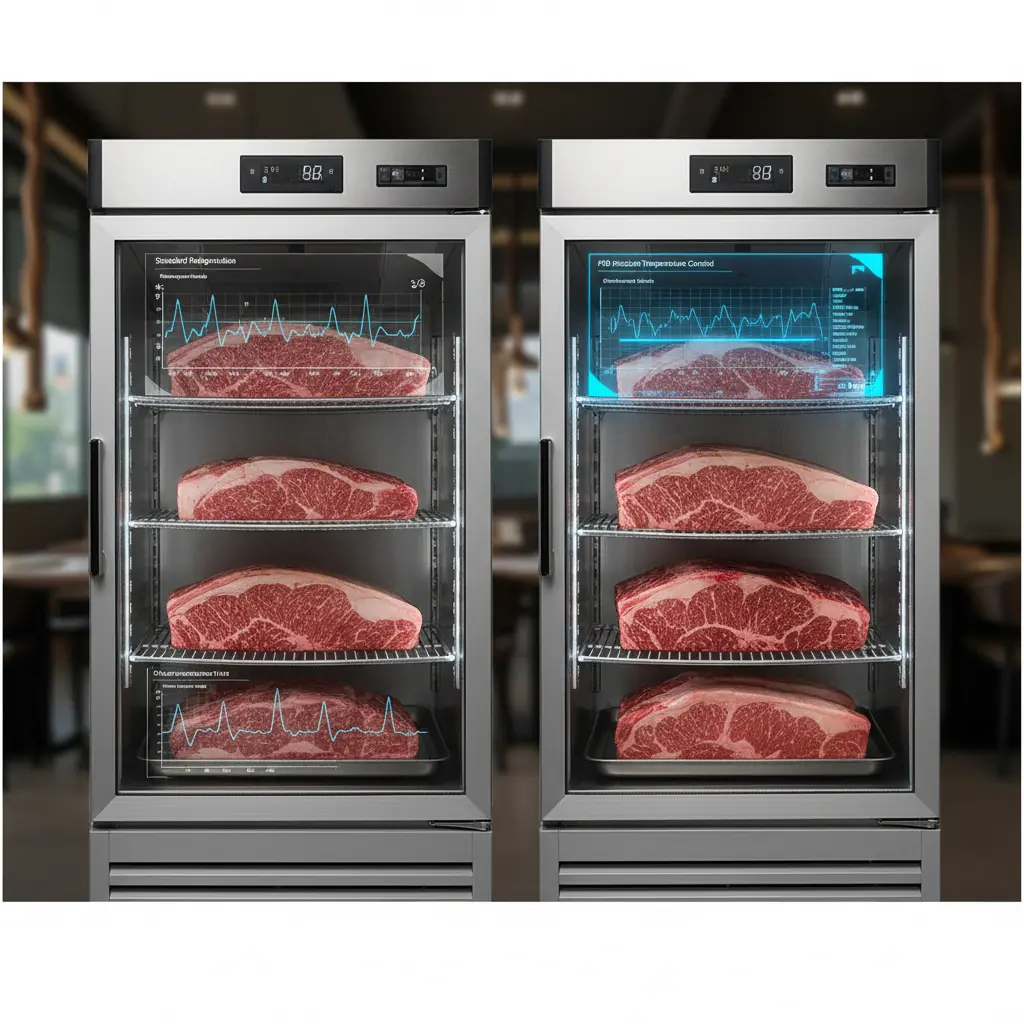 Q2. 육회 특유의 찰진 식감과 감칠맛을 만드는 고기숙성냉장고 의 'PID 정밀 온도 제어'는 일반 냉장고와 무엇이 다른가요?