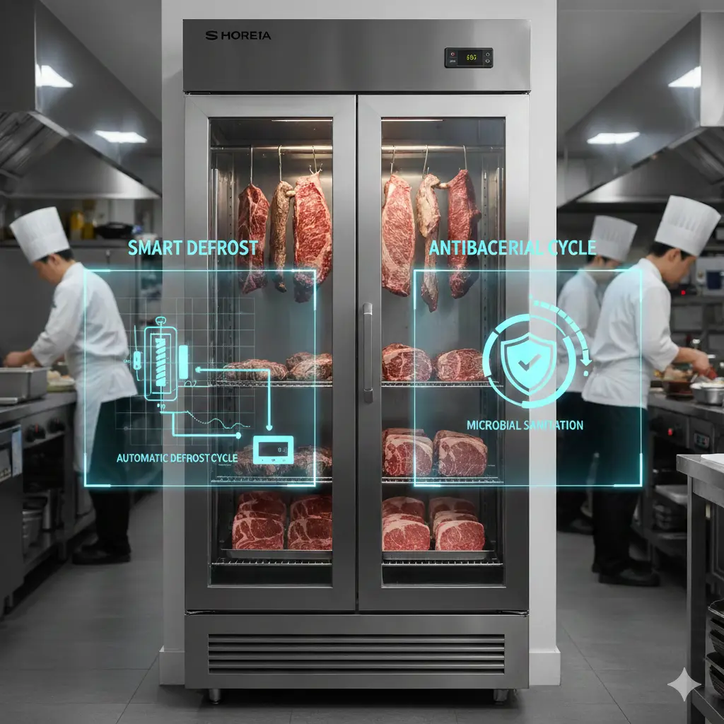 Q4. 바쁜 주방에서 위생 사고를 원천 차단하는 고기숙성냉장고 의 '스마트 제상'과 '항균 사이클' 기술은 왜 필수인가요?