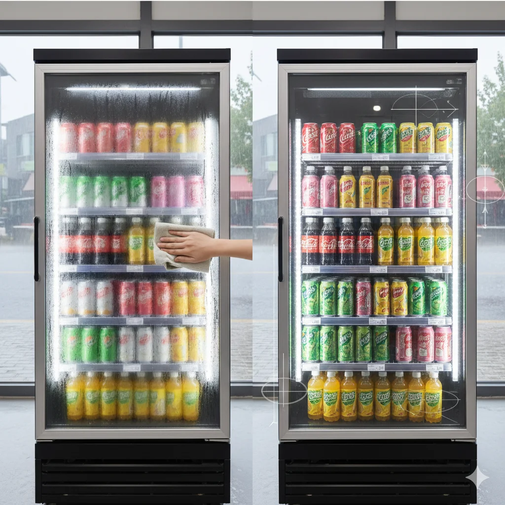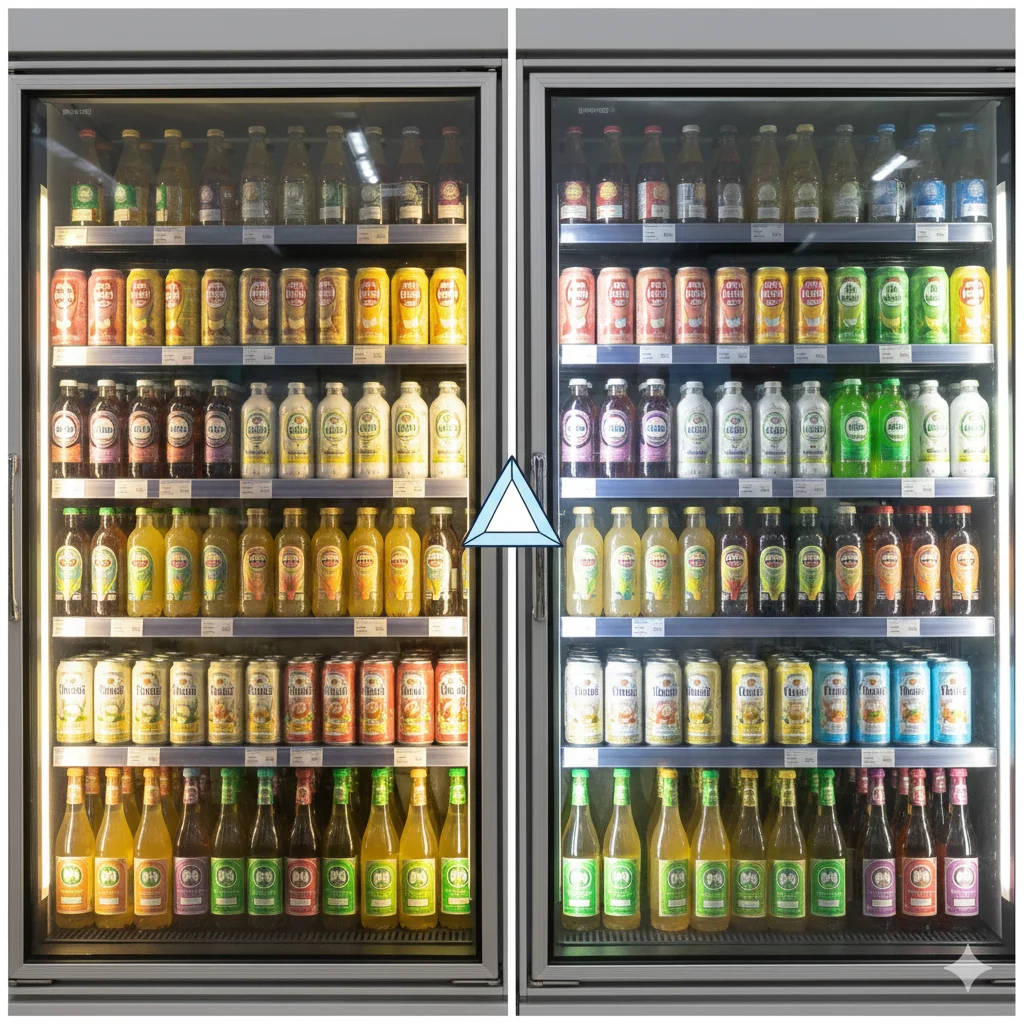 음료쇼케이스, 흔한 보급형 장비의 ‘뿌연 장막’ 설계가 갈증 해소의 시각적 쾌감을 가로막는 이유와 프리미엄 브랜드별 광학 분석