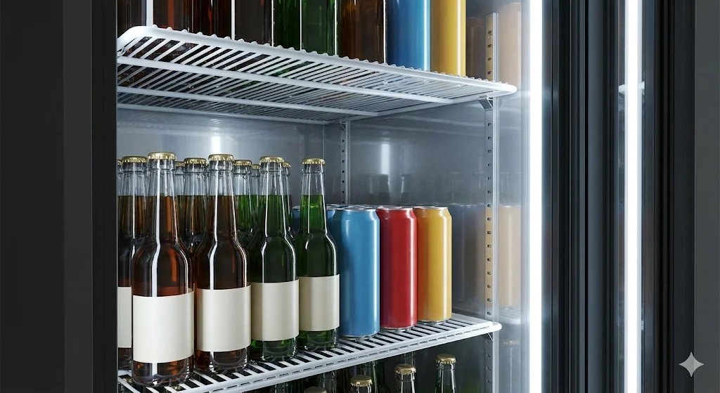 고회전 매장: 점심시간 등 특정 시간에 고객이 몰리는 매장이라면, 판매량의 1.5배 정도를 수용할 수 있는 넉넉한 용량의 음료 쇼케이스를 선택하여 재고 부족 사태를 방지해야 합니다.