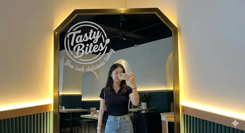 • 브랜딩 심기: 거울 표면 귀퉁이에 우리 가게의 로고감성적인 문구(예: "넌 먹을 때가 제일 예뻐", "오늘도 고생했어")를 시트지(레터링 스티커)로 붙이세요.