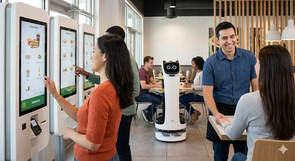 키오스크 및 서빙 로봇 도입: 반복적인 주문과 서빙 업무를 자동화하여 피크 타임의 노동 강도를 낮추고 효율을 높입니다.