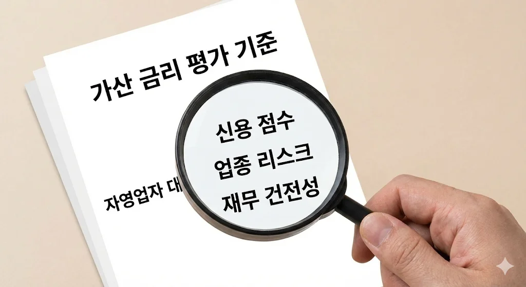 • 재무 건전성: 매출액 대비 부채 비율, 최근 3년간의 영업이익 추이 등이 가산 금리 결정에 큰 영향을 미칩니다.