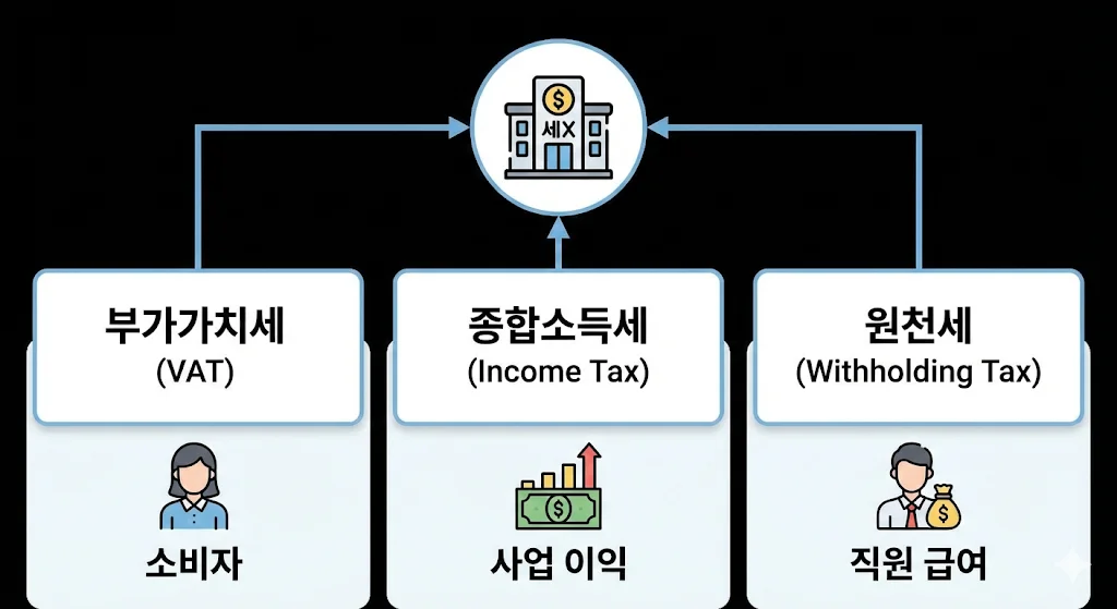 사업을 운영하다 보면 수많은 세금 고지서를 받게 됩니다. 하지만 크게 보면 자영업자가 챙겨야 할 핵심 세금은 두 가지, '부가가치세'와 '종합소득세'입니다.