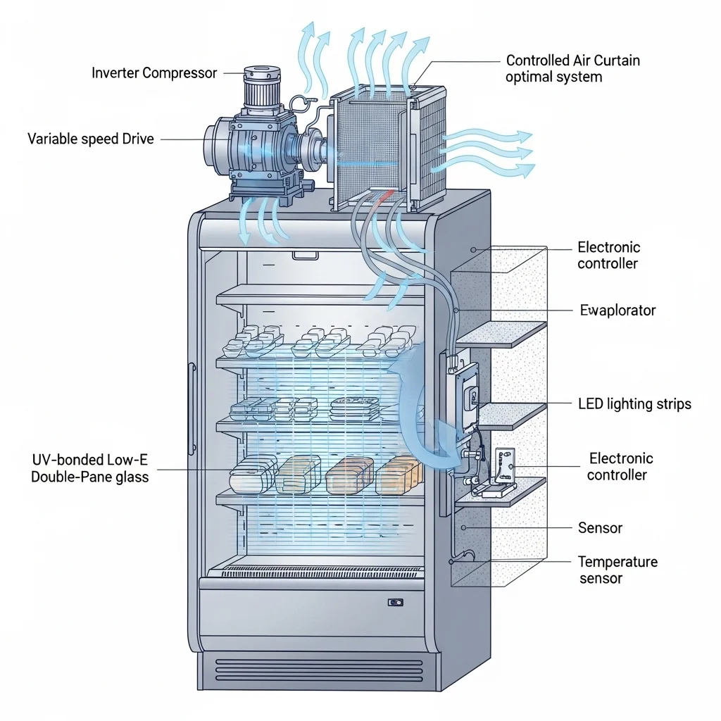 단, 냉기 손실이 크므로 '에어 커튼(Air Curtain)' 기능이 강력한지 반드시 확인해야 합니다. 신선하고 위생적인 진열이 무엇보다 중요하죠.