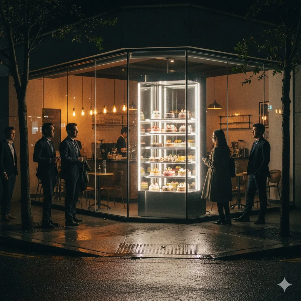 사장님의 카운터 위, 혹은 기둥 옆 자투리 공간에 딱 들어맞는 100% 맞춤형 미니 쇼케이스를 제작합니다.
