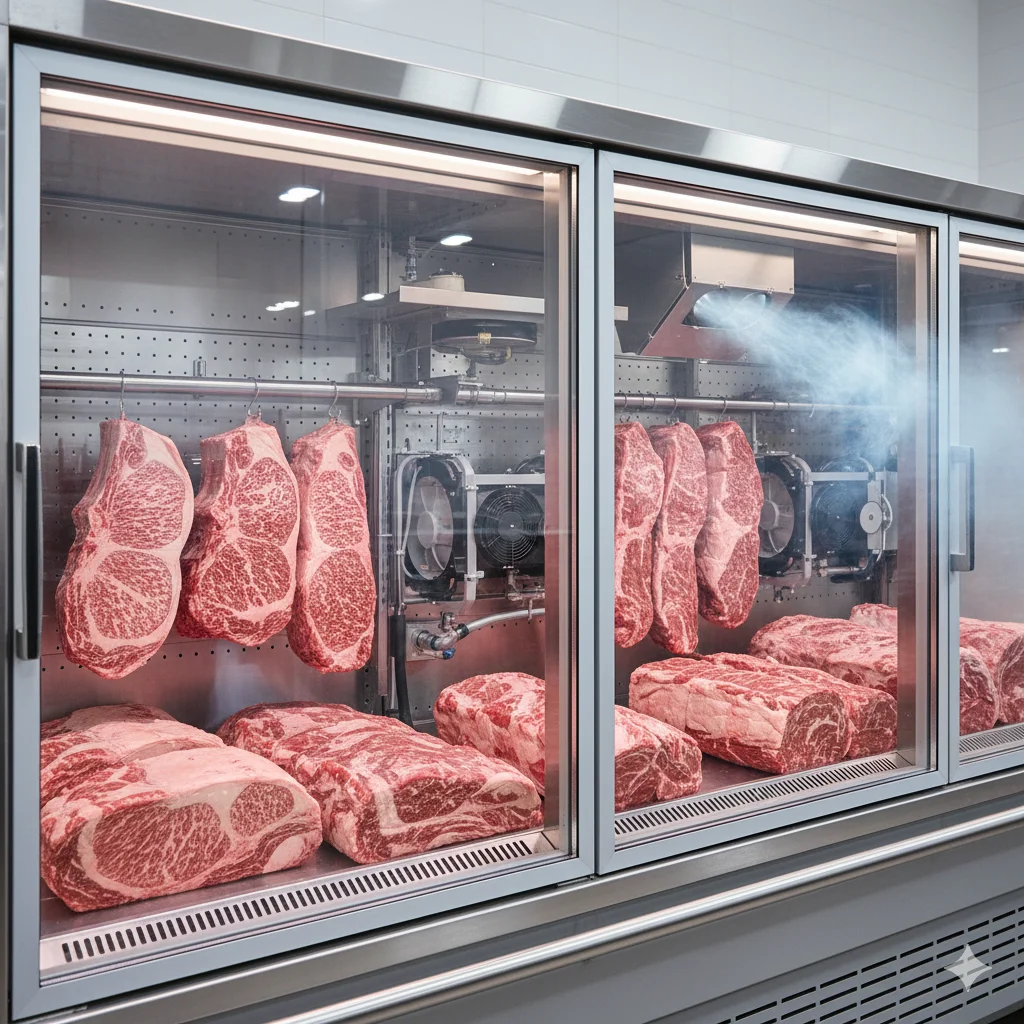 보급형 브랜드는 유리에 뜨거운 열을 가해 습기를 없애려 하지만, 이 열기가 다시 내부 고기의 온도를 흔들어 선도를 망가뜨리는 악순환을 반복합니다.