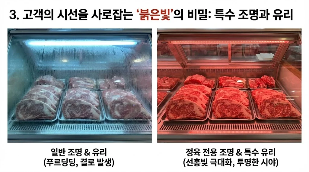 3. 고객의 시선을 사로잡는 '붉은빛'의 비밀: 특수 조명과 유리