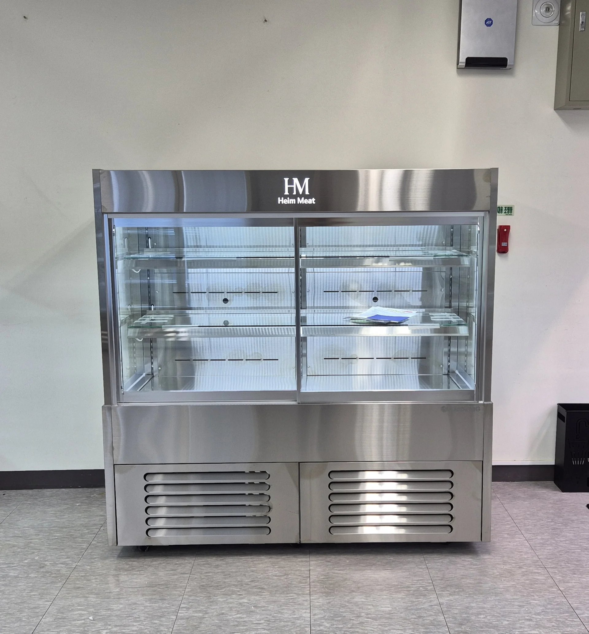 앞문형 구조로 되어 있어 고객님들과의 소통도 편리하고, 사장님께서도 빠르게 고기를 꺼내 포장하실 수 있어 작업 효율이 높습니다. 슬라이딩 도어 방식으로 좌우로 부드럽게 열리며, 필요한 부분만 열어서 사용할 수 있어 냉기 손실을 최소화할 수 있습니다.