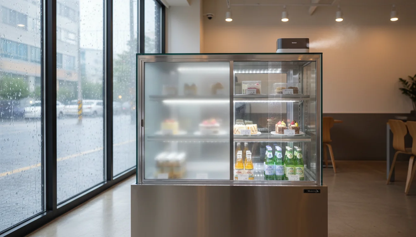 매장 안과 밖의 온도 차이가 심하거나 습도가 높은 장마철, 쇼케이스 유리에 물방울이 맺히는 결로 현상은 자영업자분들의 큰 골칫거리입니다.