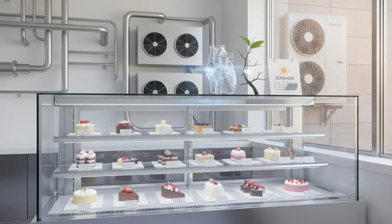 평상시엔 문제없지만, 문을 자주 여닫는 피크타임에는 온도를 다시 떨어뜨리는 힘(복원력)이 부족해 식재료 선도에 영향을 줍니다.3. 한성쇼케이스 (하이엔드): 우리는 애초에 '여유 출력'을 설계에 반영합니다.