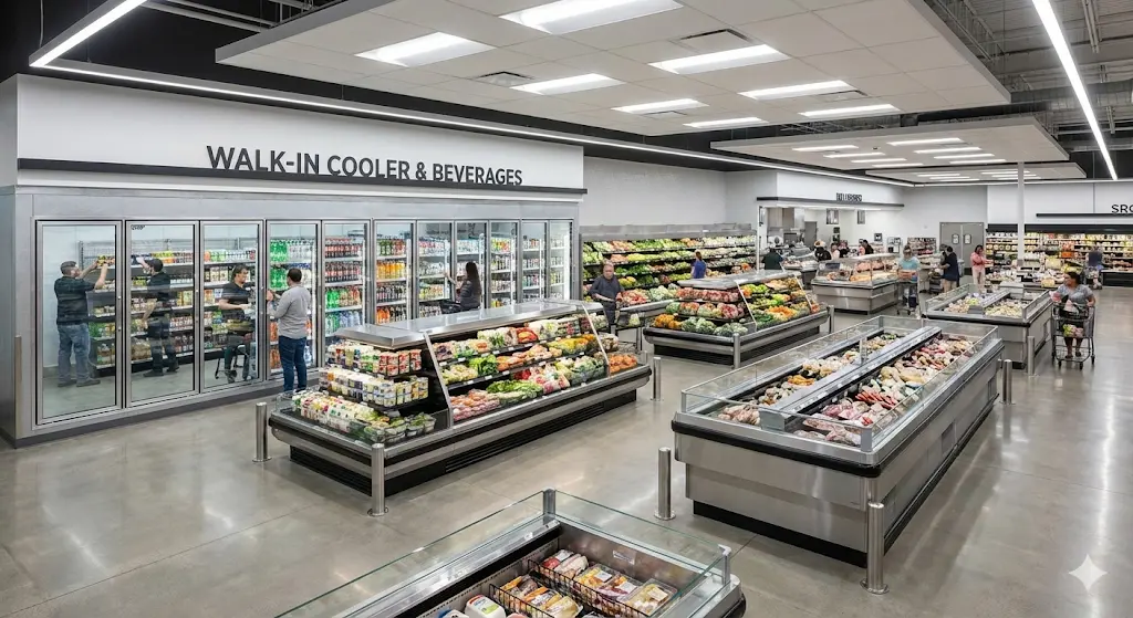 대형 매장이나 편의점에서는 창고와 진열이 동시에 가능한 워커인 쿨러 시스템을 많이 사용합니다.