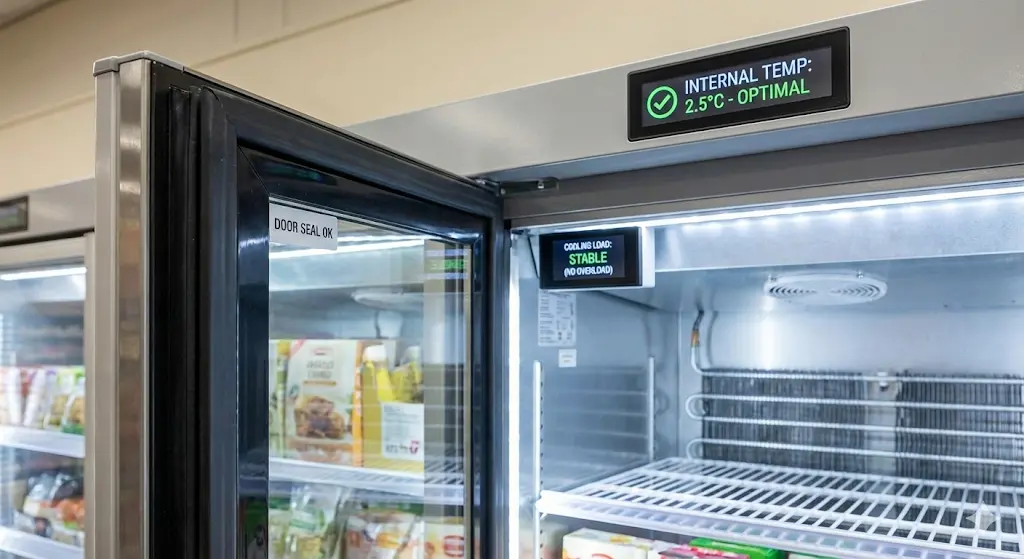 냉기가 새어나가지 않도록 도어의 패킹 상태를 설정하고 내부 온도 모니터링을 통해 냉각기의 과부하를 막아야 합니다.