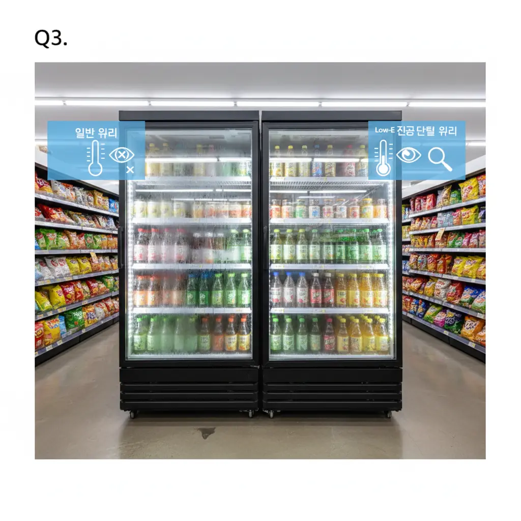 Q3. 시각적 투명도를 결정짓는 이슬점 제어, Low-E 유리와 진공 단열 기술의 차이는?