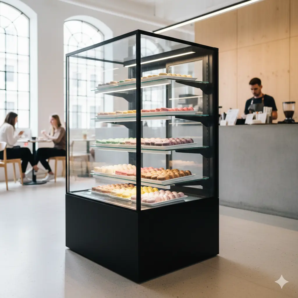 A. 반드시 'Low-E 페어 글라스'와 '유리 열선' 옵션을 확인하세요. 마카롱은 저온 보관이 필수라 실내 온도 차 때문에 유리에 물방울이 맺히기 쉽습니다.