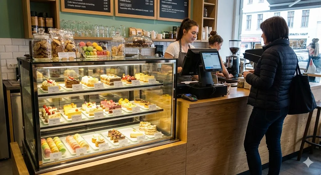 객단가 상승: 계산대 옆에 배치된 디저트 쇼케이스는 결제 직전 고객의 시선을 사로잡아 추가 구매를 유도합니다.