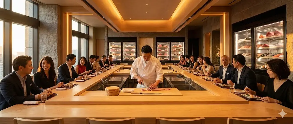 하이엔드 초밥집창업의 성공 공식! 셰프의 숙성 비법부터 고객을 사로잡는 네타케이스 진열, 그리고 AI 예지 정비를 통한 완벽한 식재료 관리 노하우를 공개합니다.