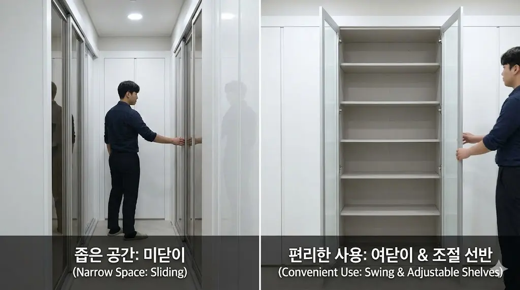 미닫이(Sliding) vs 여닫이(Swing):