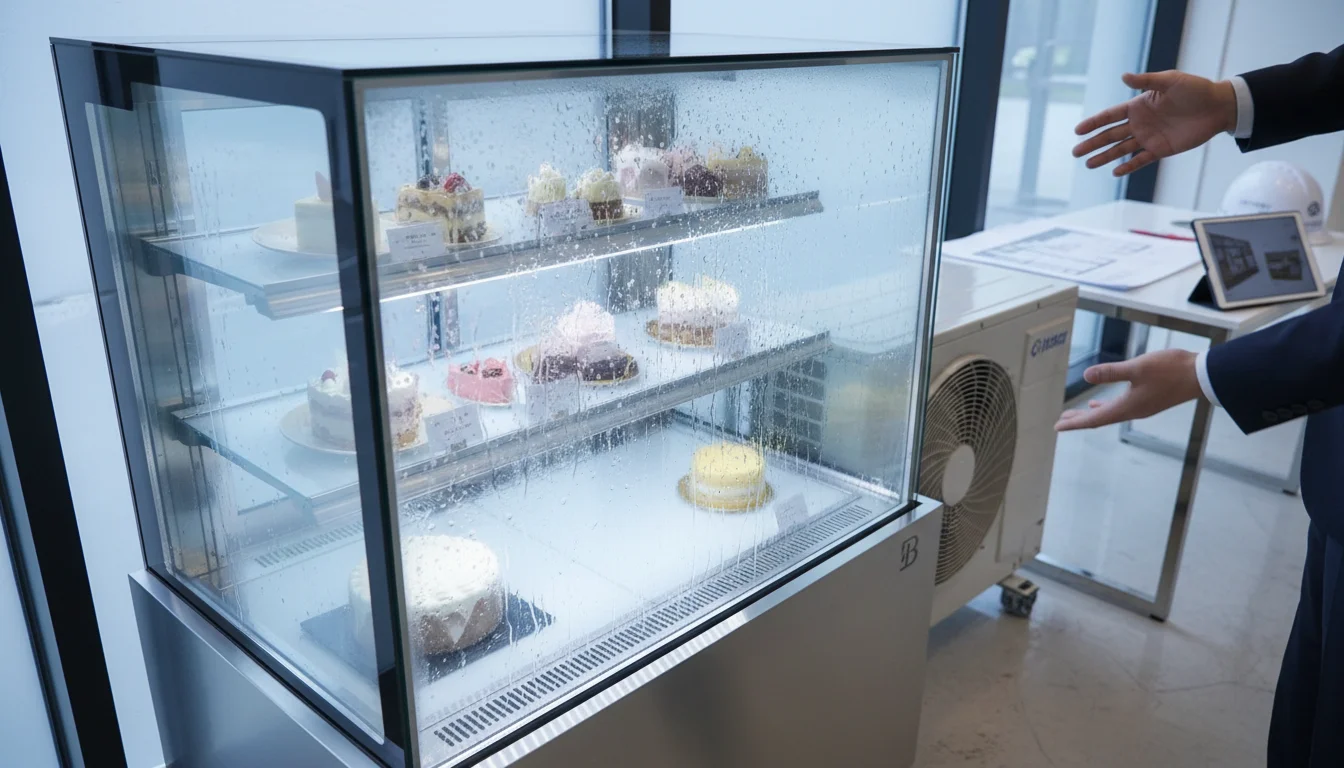 Q2. 인테리어 업체에서 추천한 B사 쇼케이스, 왜 유리 틈새에 물방울이 맺혀서 디저트가 하나도 안 보일까요?