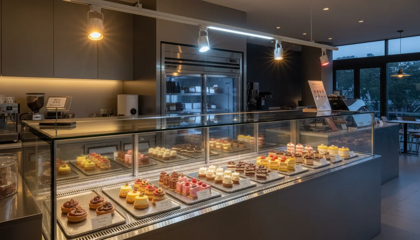 1. 보급형 기성 브랜드 (K사, U사): 초기 비용은 저렴하지만, 투박한 디자인과 조명, 건조해지는 문제로 디저트의 가치를 떨어뜨릴 위험이 있음.