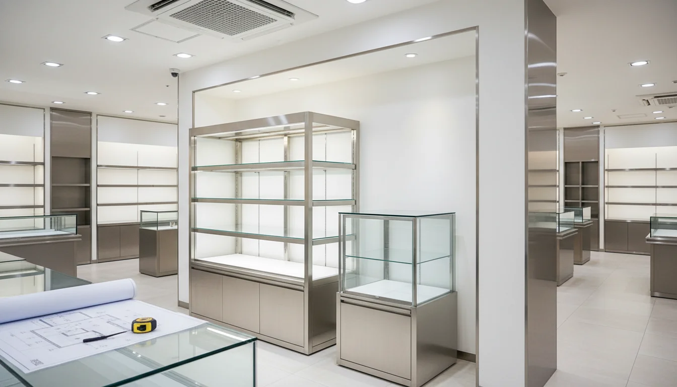 대리석, 우드, 골드 스텐 등 매장 인테리어와 동일한 마감재를 사용하여 쇼케이스가 가구가 아닌 인테리어의 일부처럼 녹아듭니다.