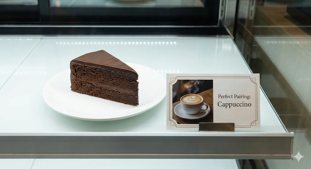 페어링 제안: 초콜릿 케이크 옆에 진한 아메리카노 이미지를 함께 배치하거나, 샌드위치 옆에 병음료를 두는 식의 연관 배치는 아주 훌륭한 카페 메뉴 추천 전략입니다.